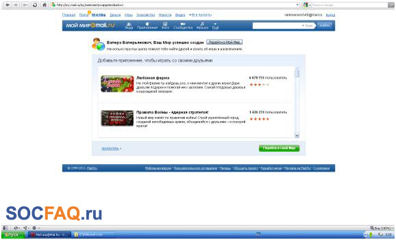 Если регистрация в МойМир@Mail.Ru была завершена успешно, то далее вам необходимо следовать по ссылке «Мой Мир: не создан. Создать».
